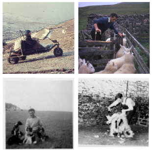 (Pictures from the early years. After visiting a farm for a day out from his school in Edinburgh, Dad decided he wanted to be a shepherd, and that is what he did all his life, with the exception of two years of National Service in the RAF. I tried to follow in his footsteps in one career and did so for 6 years in another!)